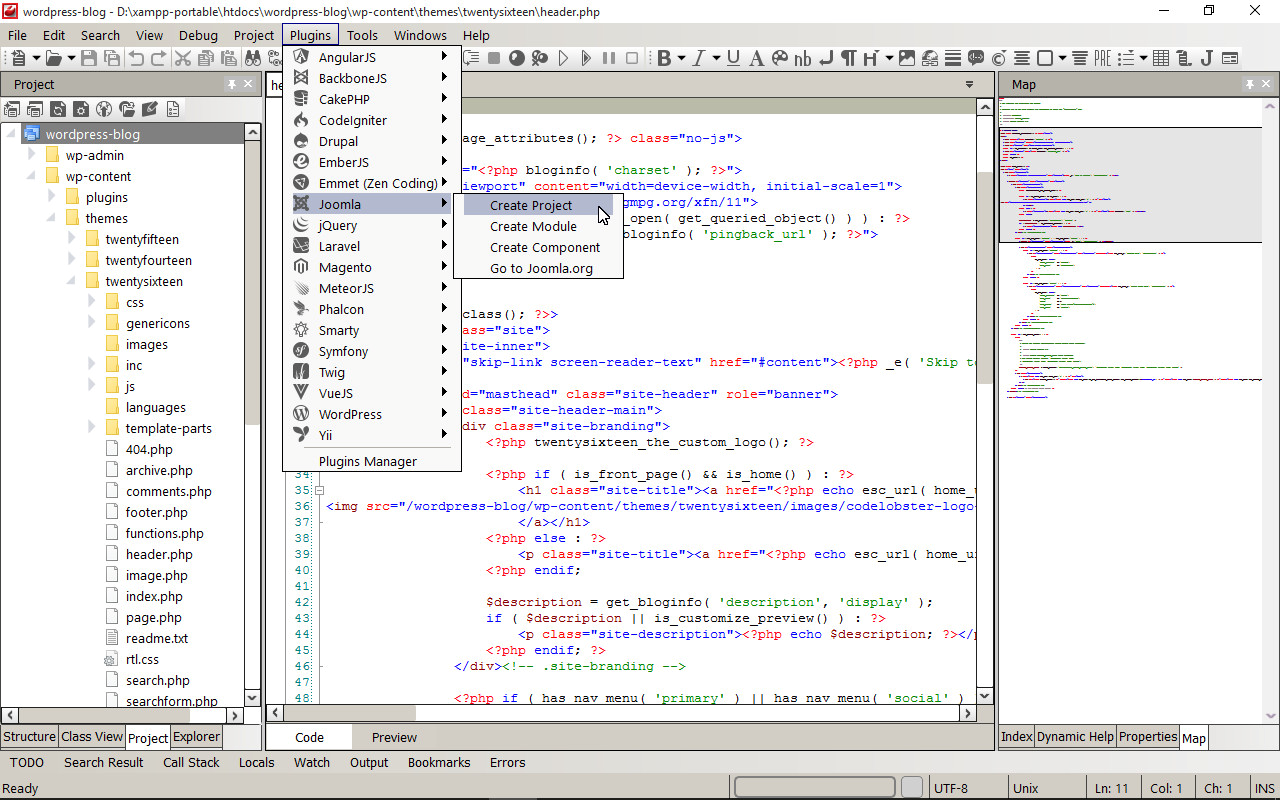 The main advantage of CodeLobster is the automation of work with various frameworks and CMS. You can create several types of projects based on popular and proven systems.